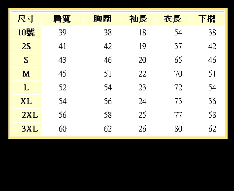 請自行與原有T-shirt尺寸比對,本人不作任何尺寸意見及建議.